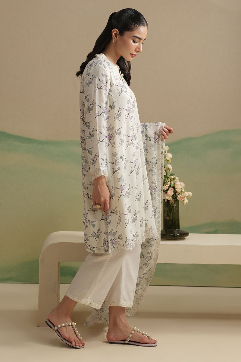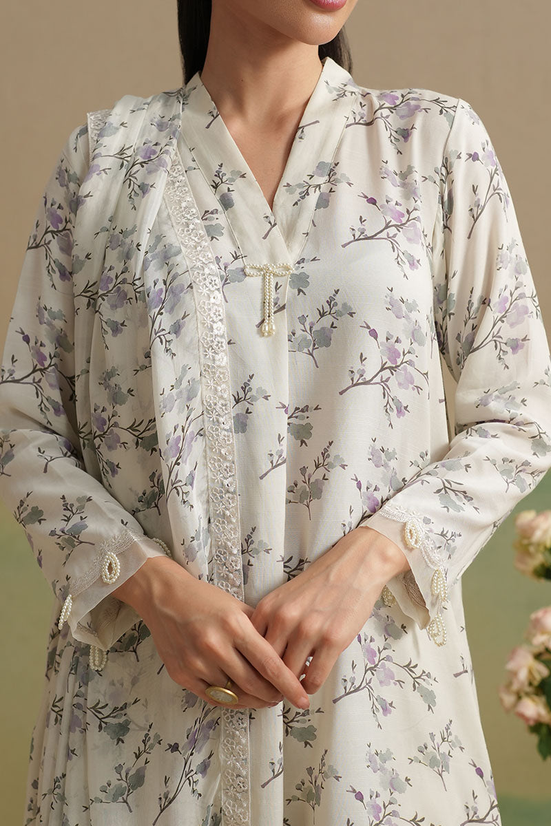- This Celestial Tide 2-Piece Set Features An A-Line Shirt With Intricate Embroidery On The Hem And A Front Print, Complemented By A Back Print For A Cohesive Look. The Neckline Showcases A Wrap-Around Design With Pleats And Tassel Details, While The Regular Sleeves Are Adorned With Matching Embroidery And Tassels. Paired With A Silk Dupatta That Combines Printed Patterns And Delicate Embroidery, This Ensemble Offers A Refined Blend Of Texture And Style Suitable For Elegant Occasions.