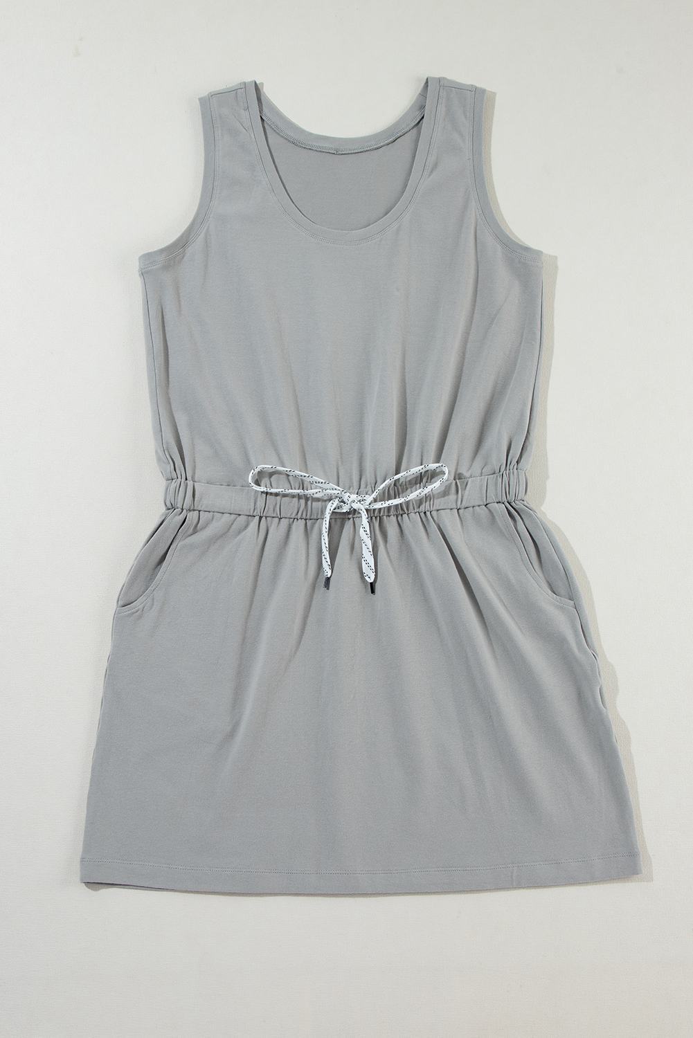 Be the first to review “Gray Sleeveless Drawstring Waist Mini Dress” Cancel reply