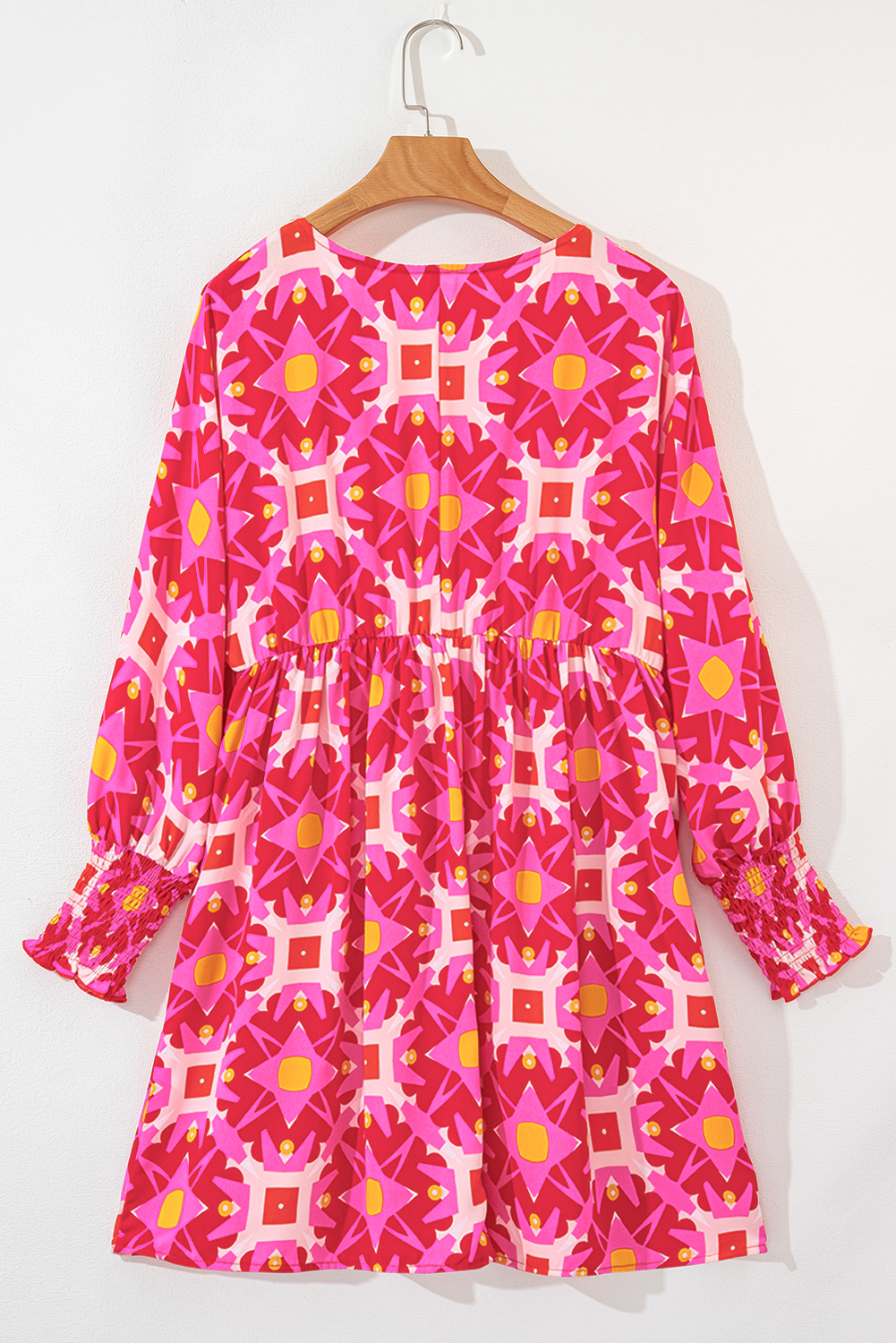 Be the first to review “Strawberry Pink Geometric Print Smocked Long Sleeve Mini Dress” Cancel reply