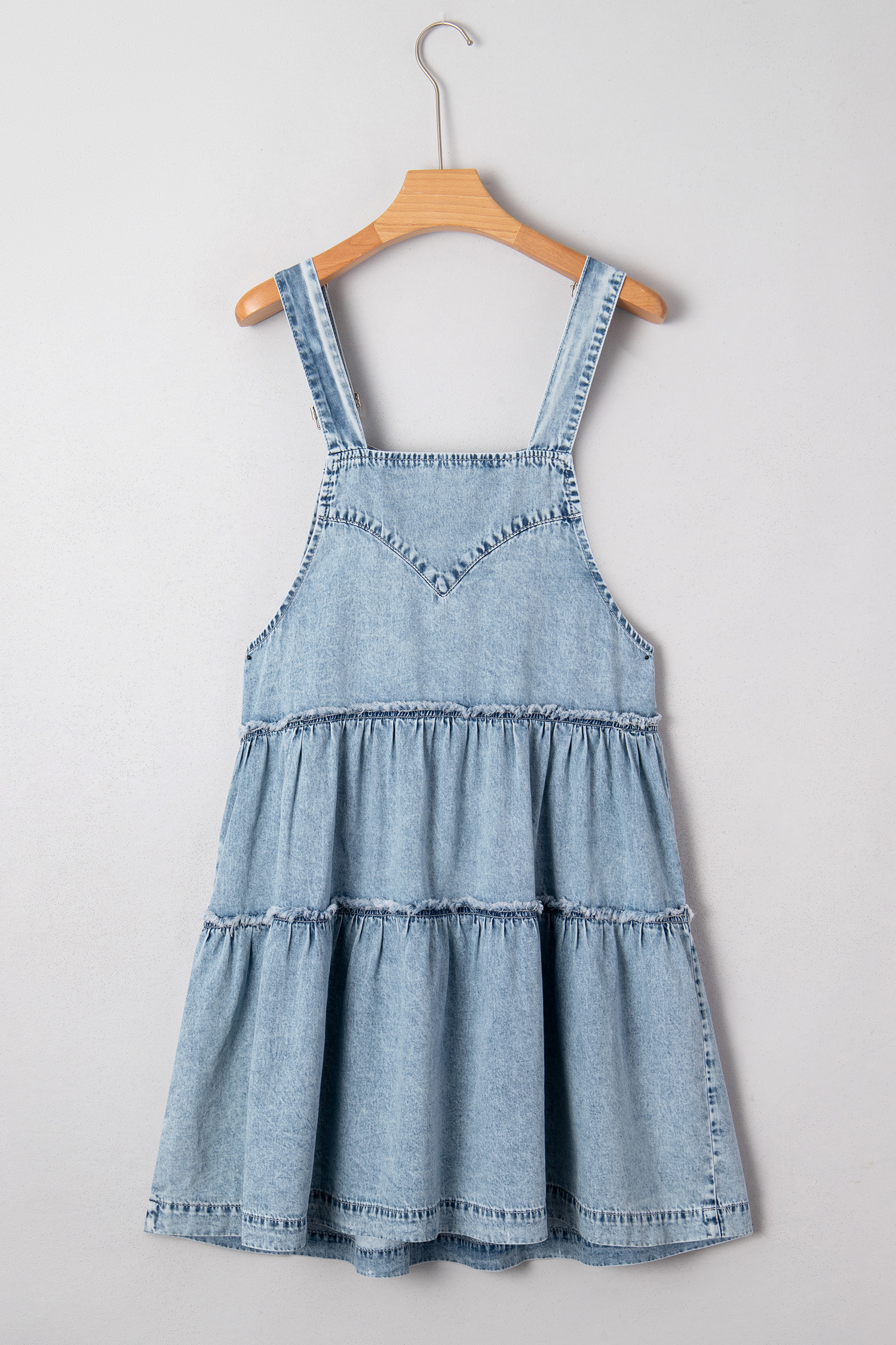Dusk Blue Light Wash Tiered Flowy Overall Denim Dress